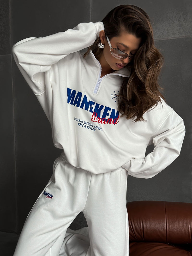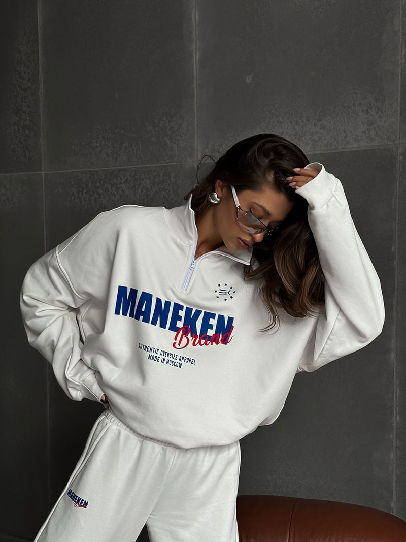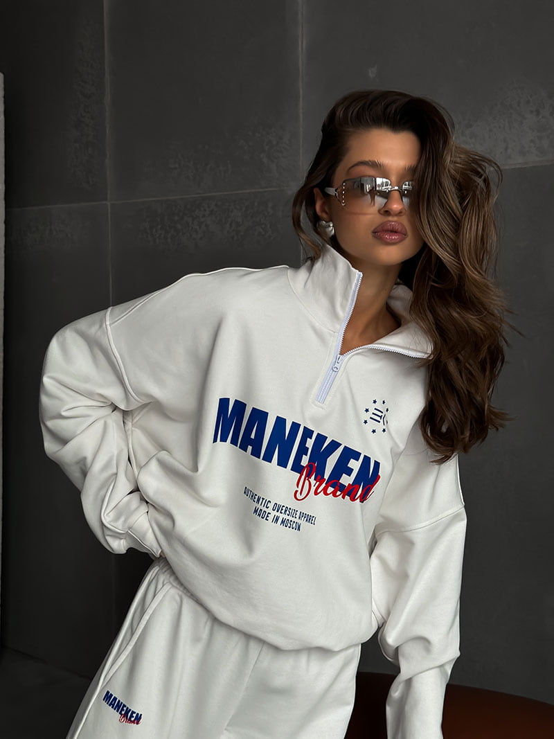 Вдохновленный олимпийками свитшот имеет воротник-стойку с короткой молнией, которая позволяет регулировать уровень комфорта по погоде, добавляет спортивный акцент и современный стиль.