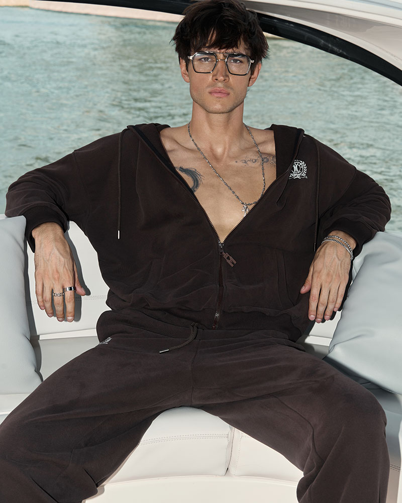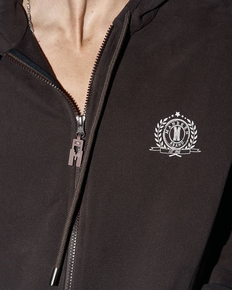 Худи oversize на молнии выполненный из мягкого велюрового ("пич") материала с варёным эффектом. Молния имеет фирменный прорезиненный пуллер в форме «М».
