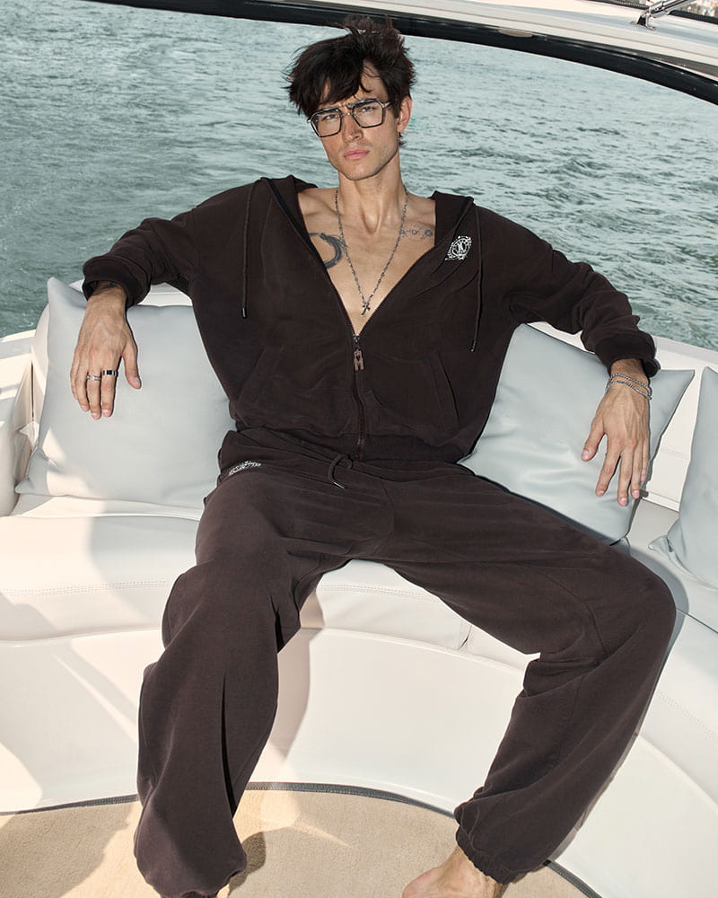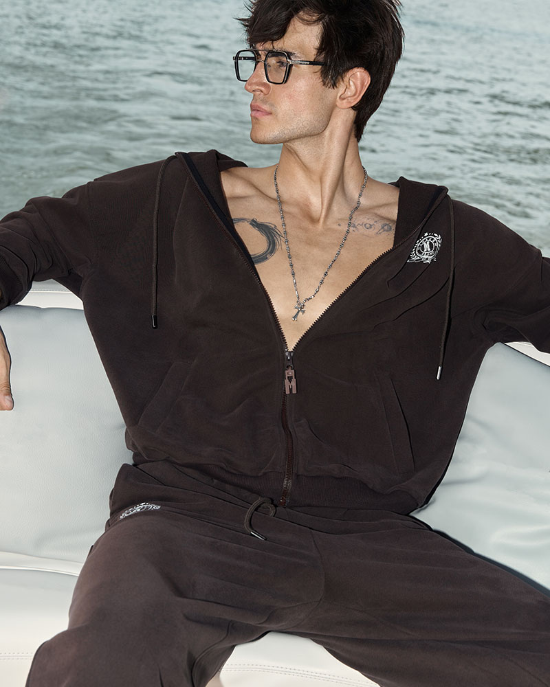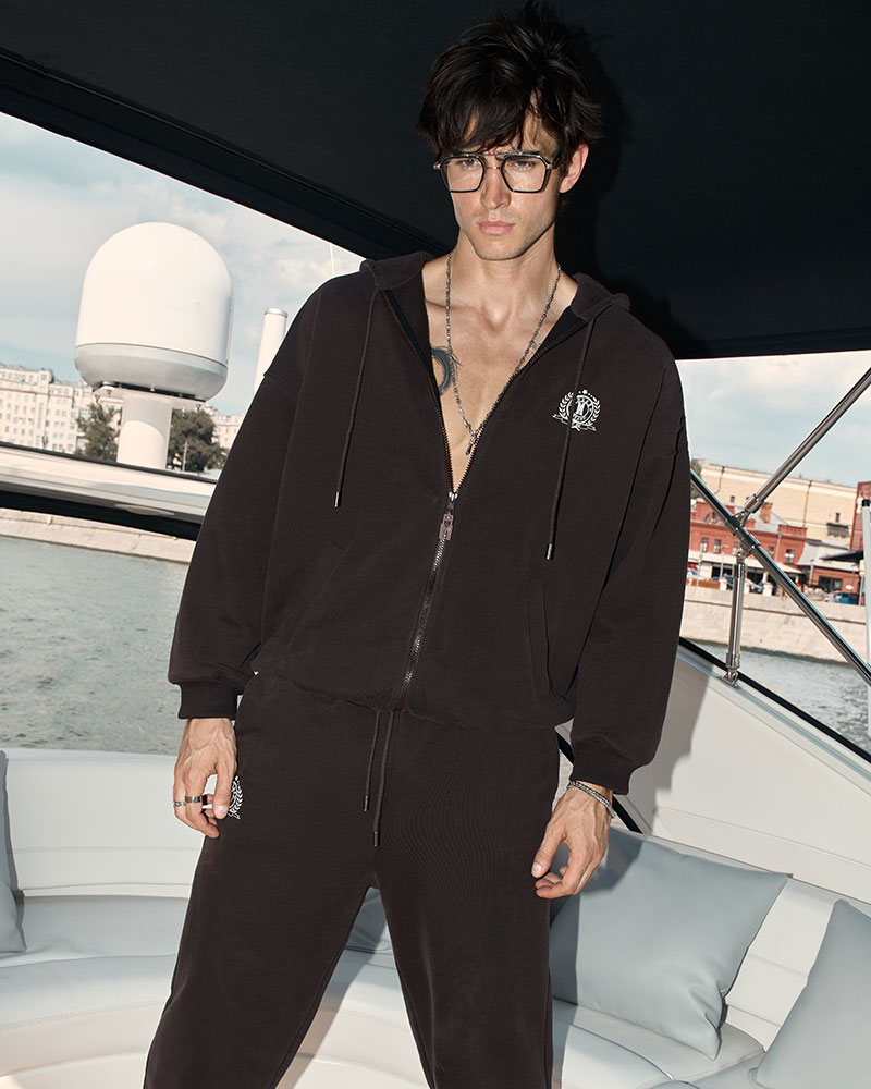 У худи есть глубокие карманы-клапаны, для мелочей. Сбоку нанесён принт «герб» в стиле old money.