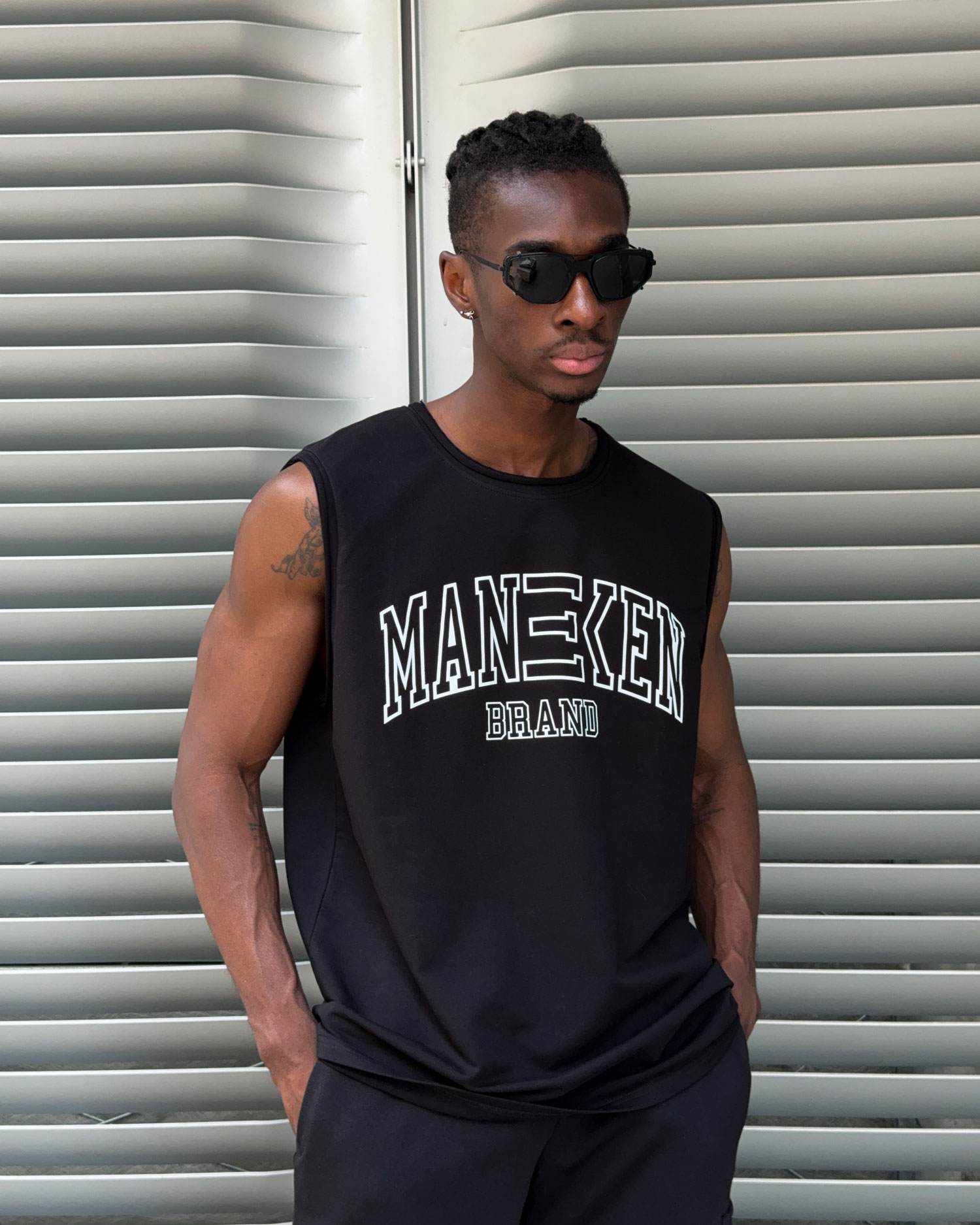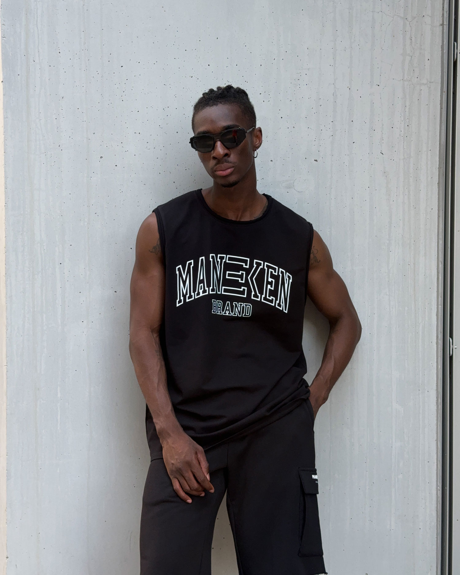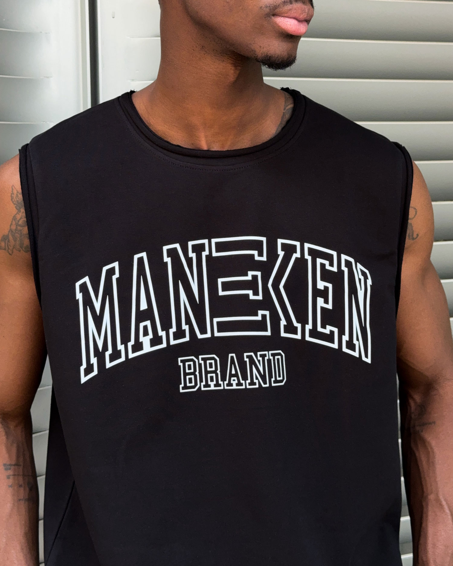 майка с контрастным брендингом из 2х нитки с необработанными краями