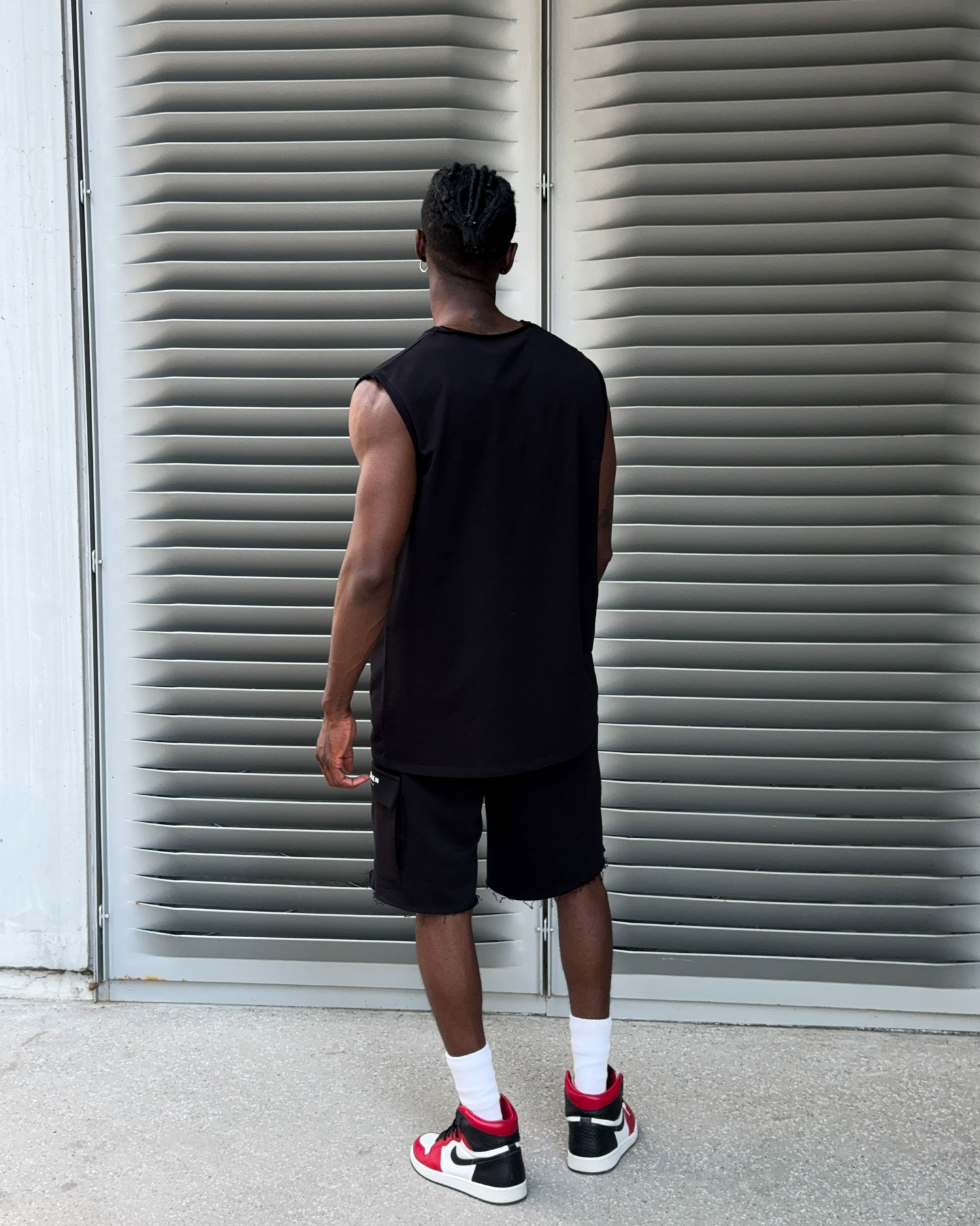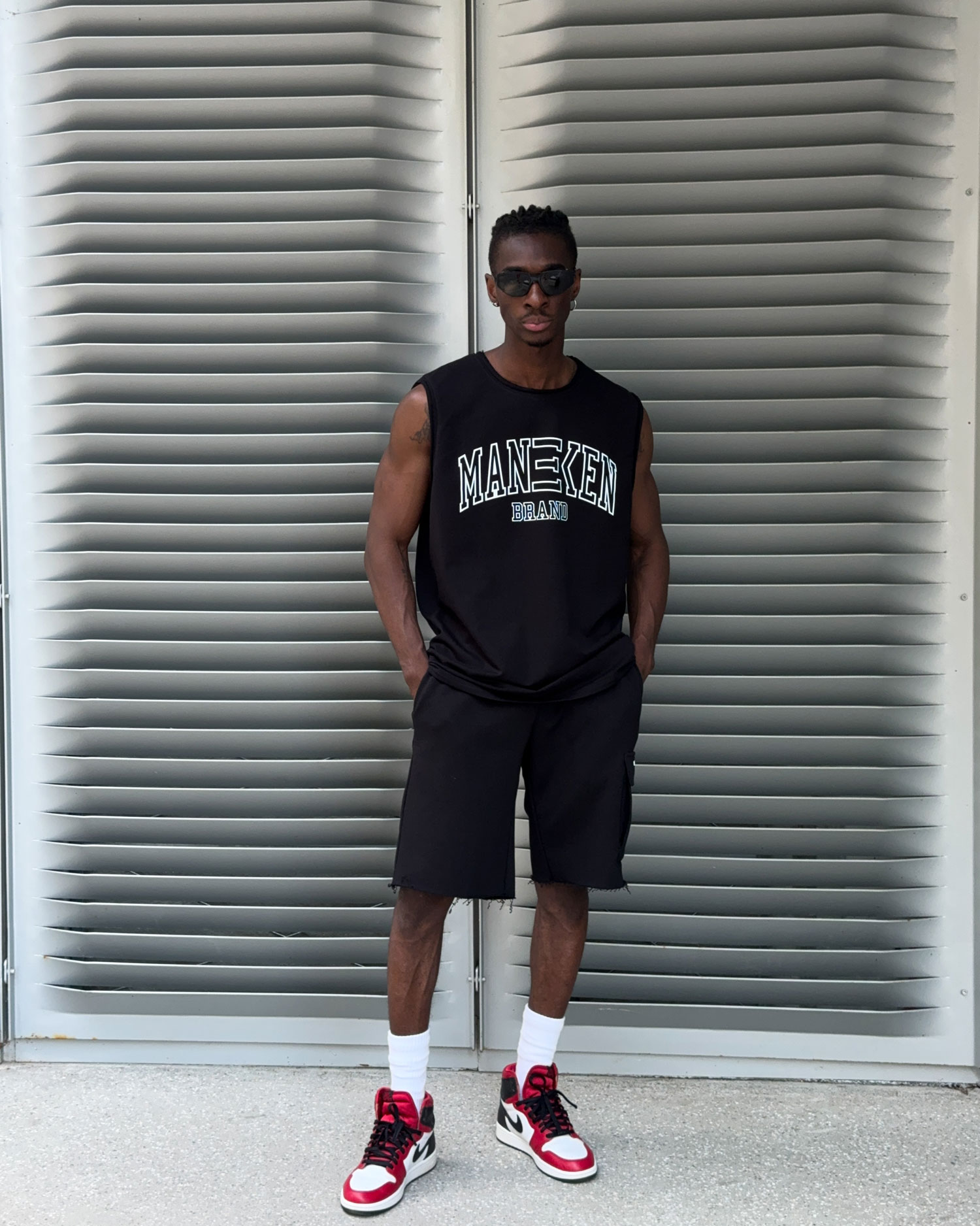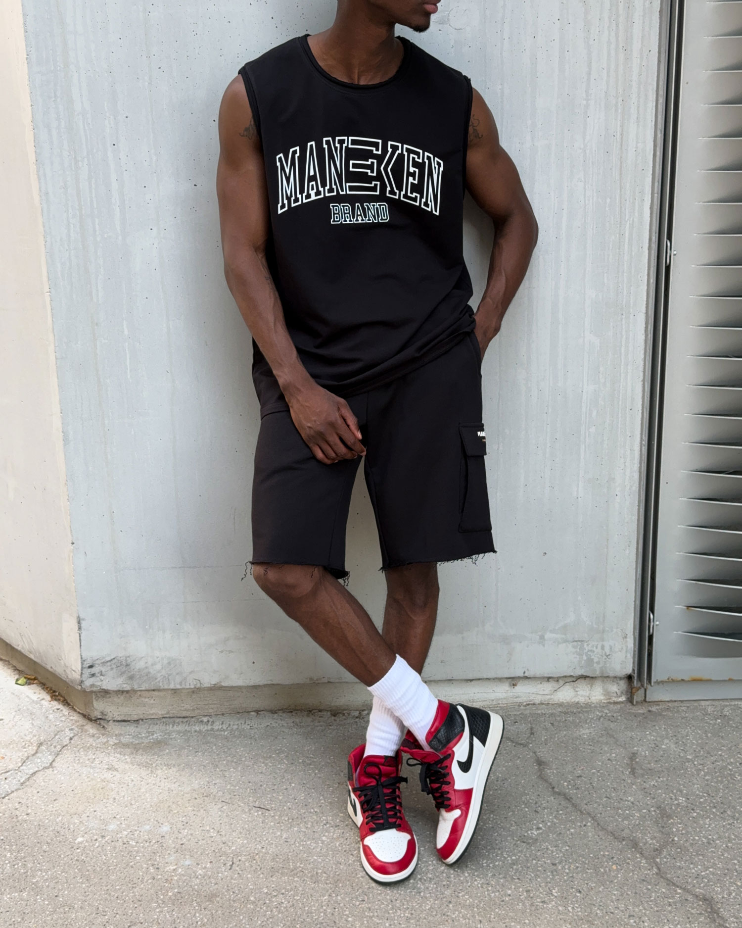 майка с контрастным брендингом из 2х нитки с необработанными краями