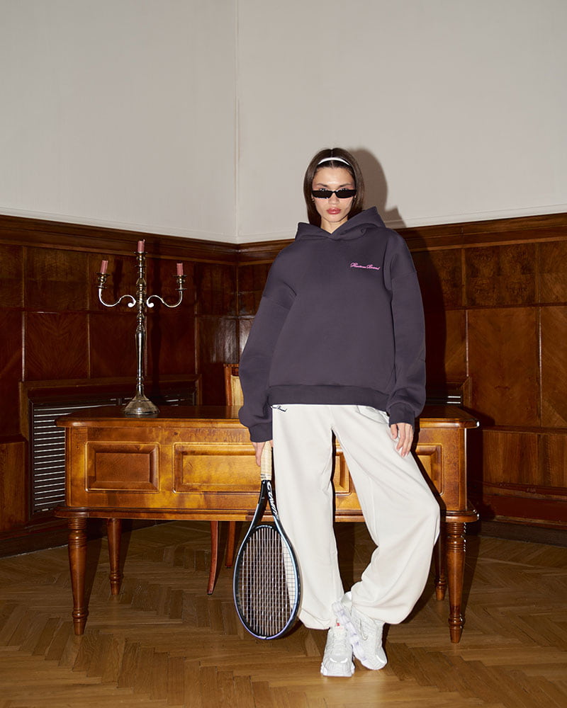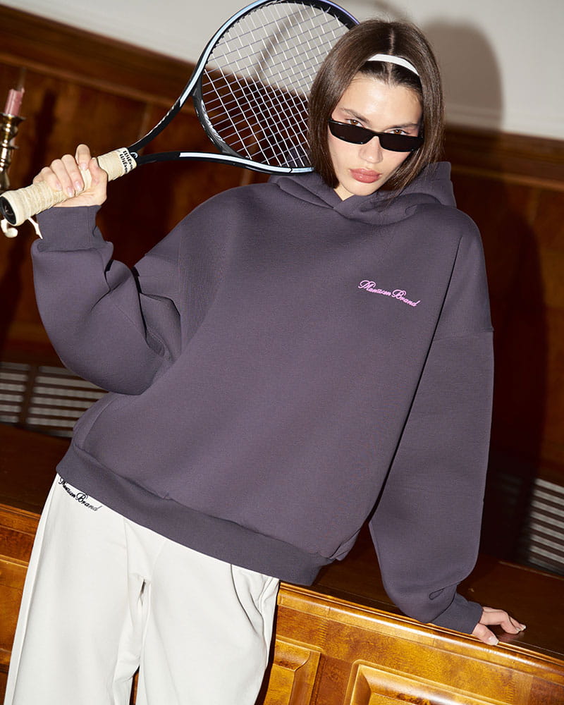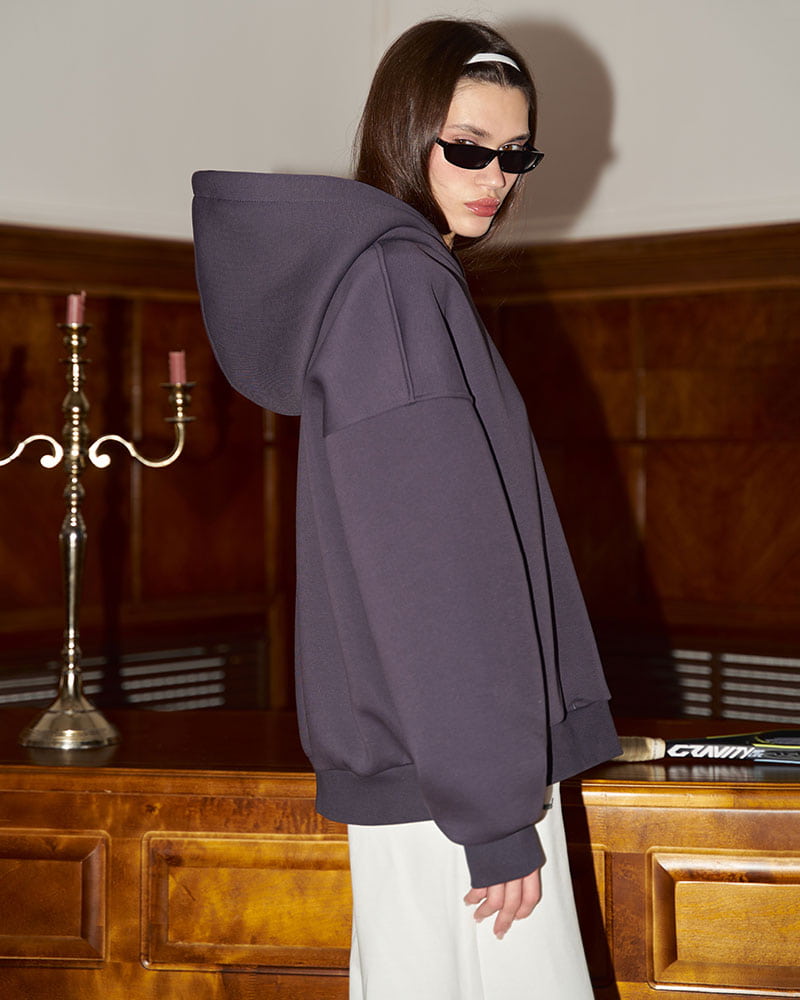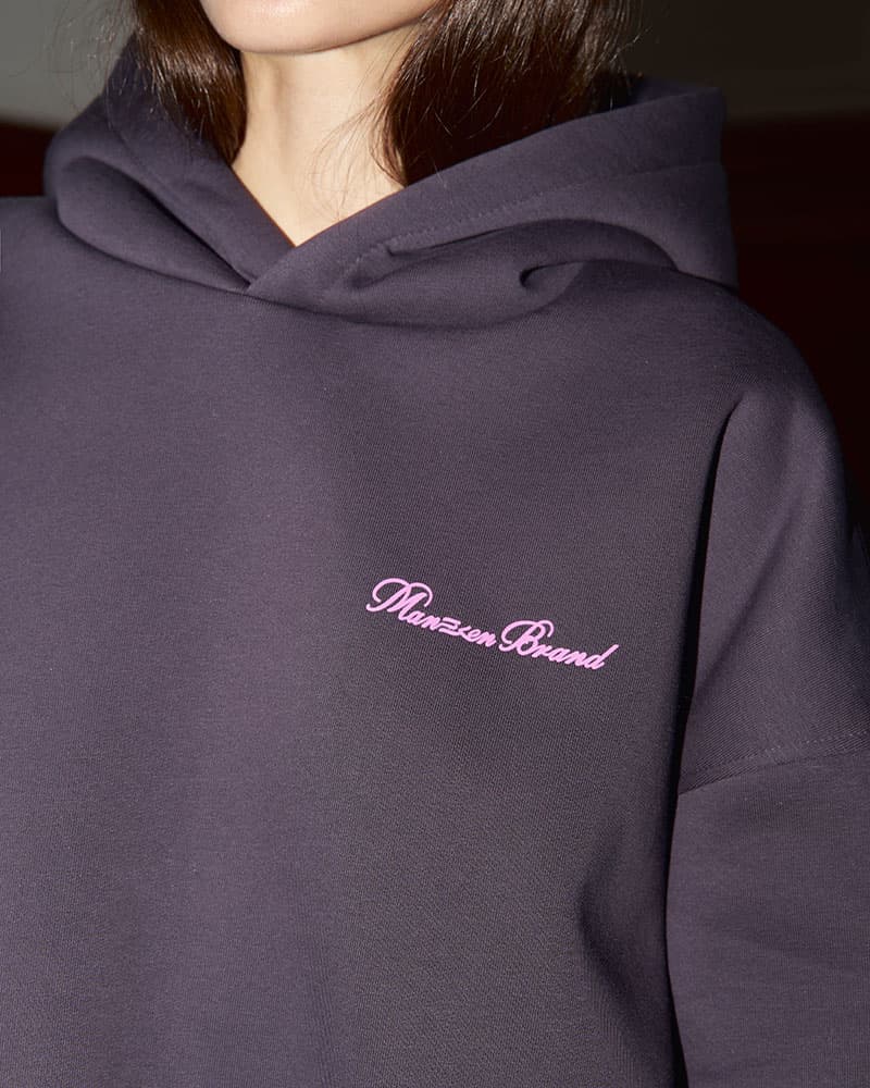 Худи с мягким начесом на внутренней стороне. Выполнен в умеренном оверсайз объеме со спущенным плечом, что придает свободный и непринужденный вид.