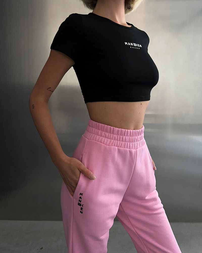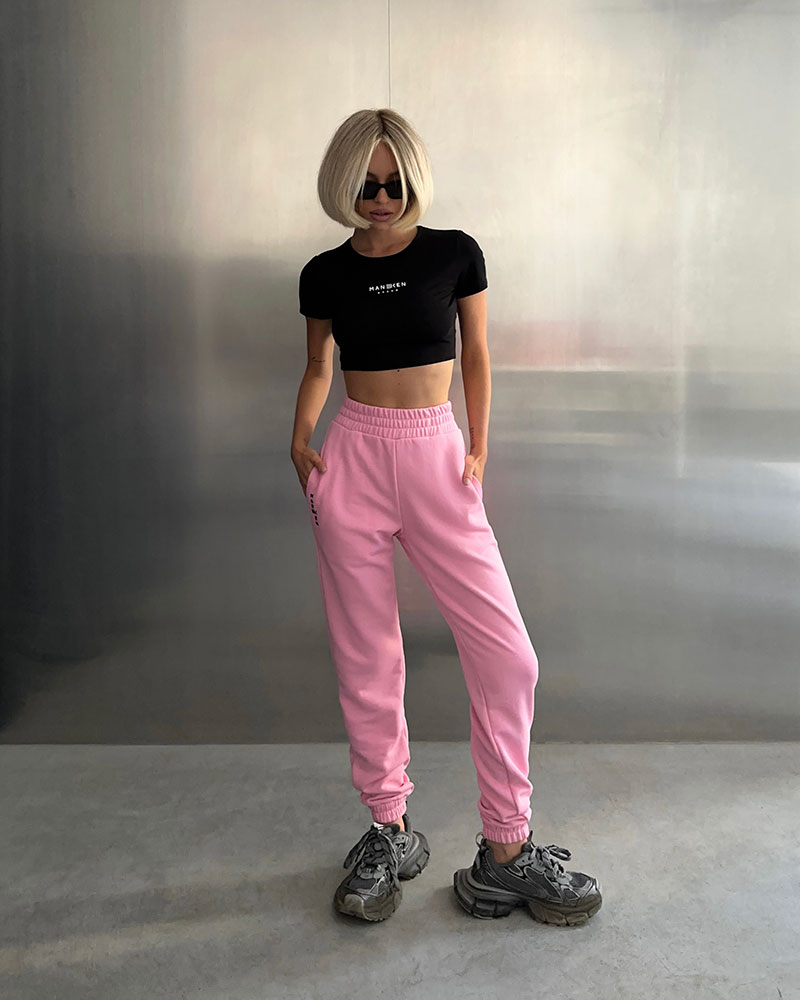 Брюки фирменного кроя на высокой посадке с логотипом на кармане.