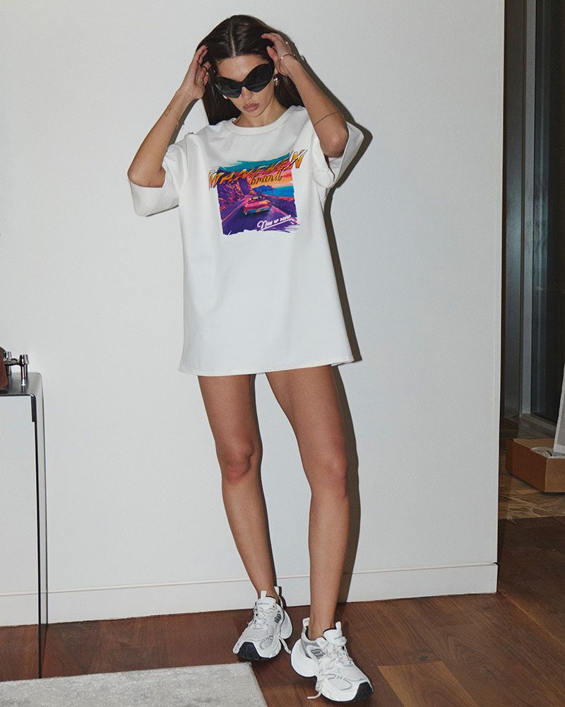 Футболка свободного кроя идеально подходит для создания расслабленных образов, а ее универсальность позволяет легко сочетать с джинсами, шортами или юбками.
