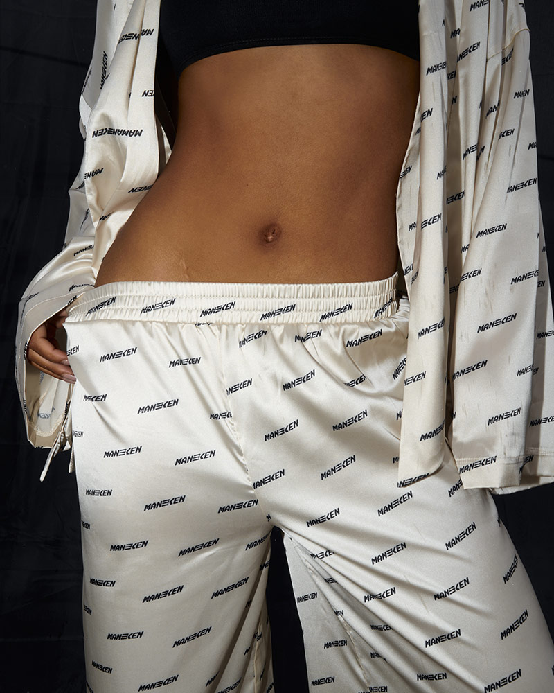 Костюм включает в себя два элемента: элегантное кимоно и широкие брюки, создавая идеальный ансамбль для летних дней или уютных вечеров.
