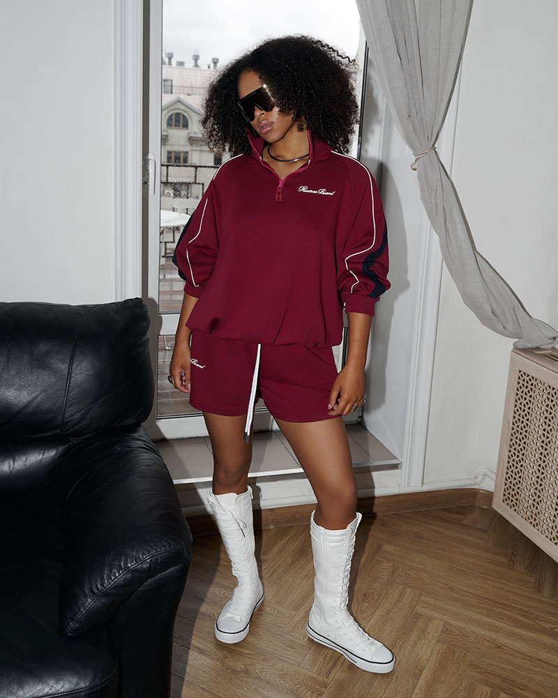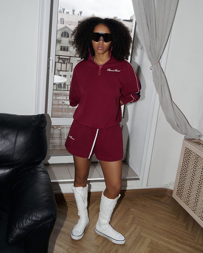 Шорты умеренной длины, свободные и широкие по низу, обеспечивают комфорт и лёгкость в движении. Узкий пояс со шнуром позволяет настроить посадку под индивидуальные особенности фигуры. Завершая образ на уровне кармана расположен прорезиненный логотип в стиле old money.