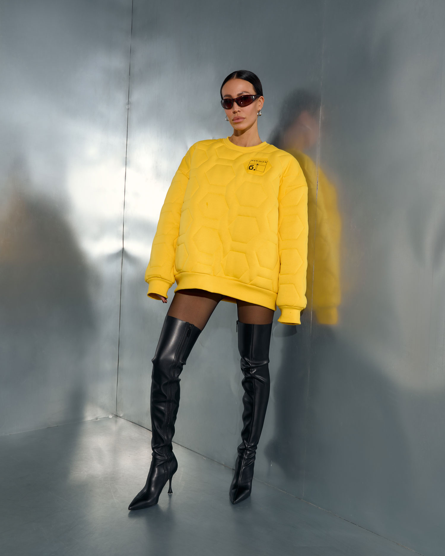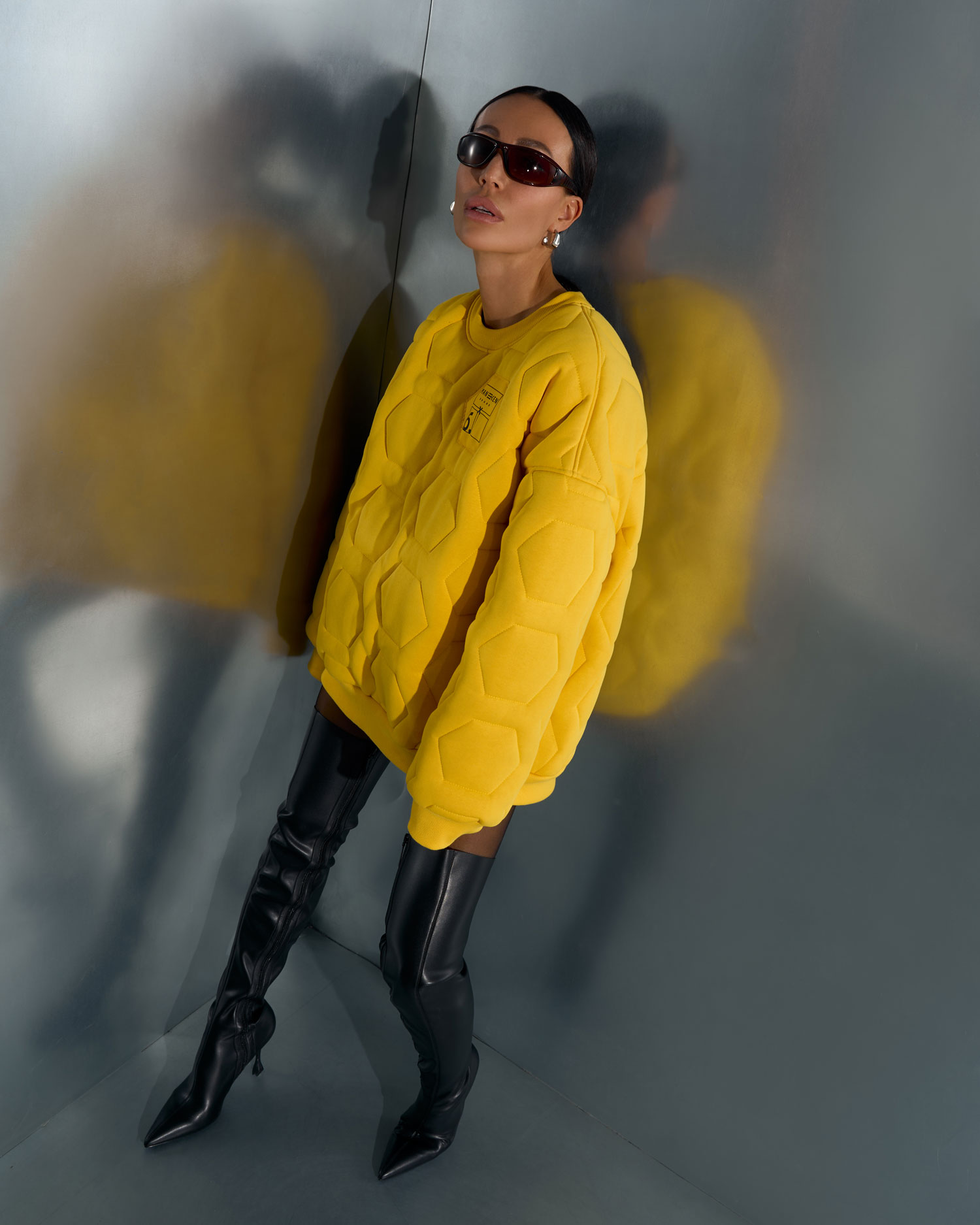 Свитшот выполнен из футера с начёсом с эксклюзивной стёжкой, внутри мягкая подкладка.